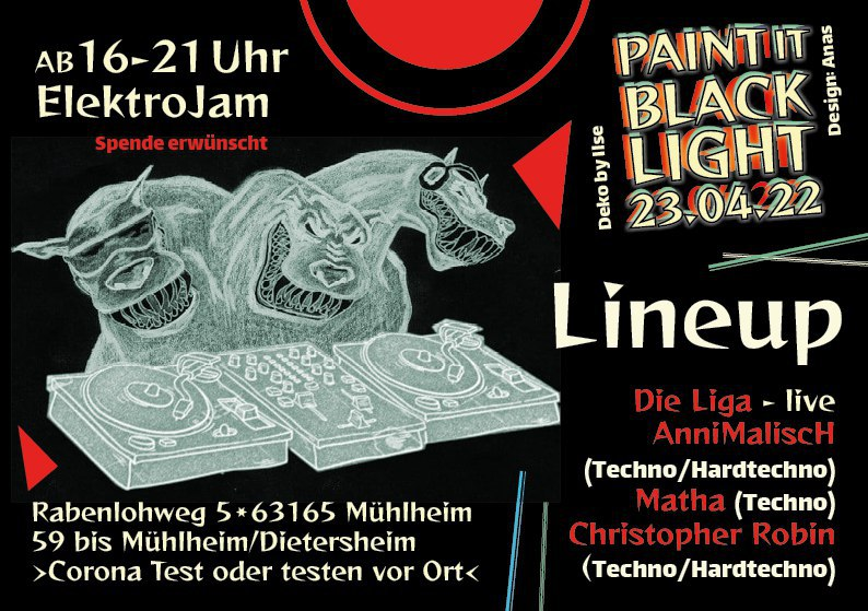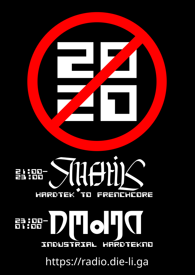Diesmal auf uns allein gestellt, werden wir mit Vinyls, digital und Liveacts einen Ligamarathon von EBM über Techno und Schranz bis Hardtek und Frenchcore abreißen.