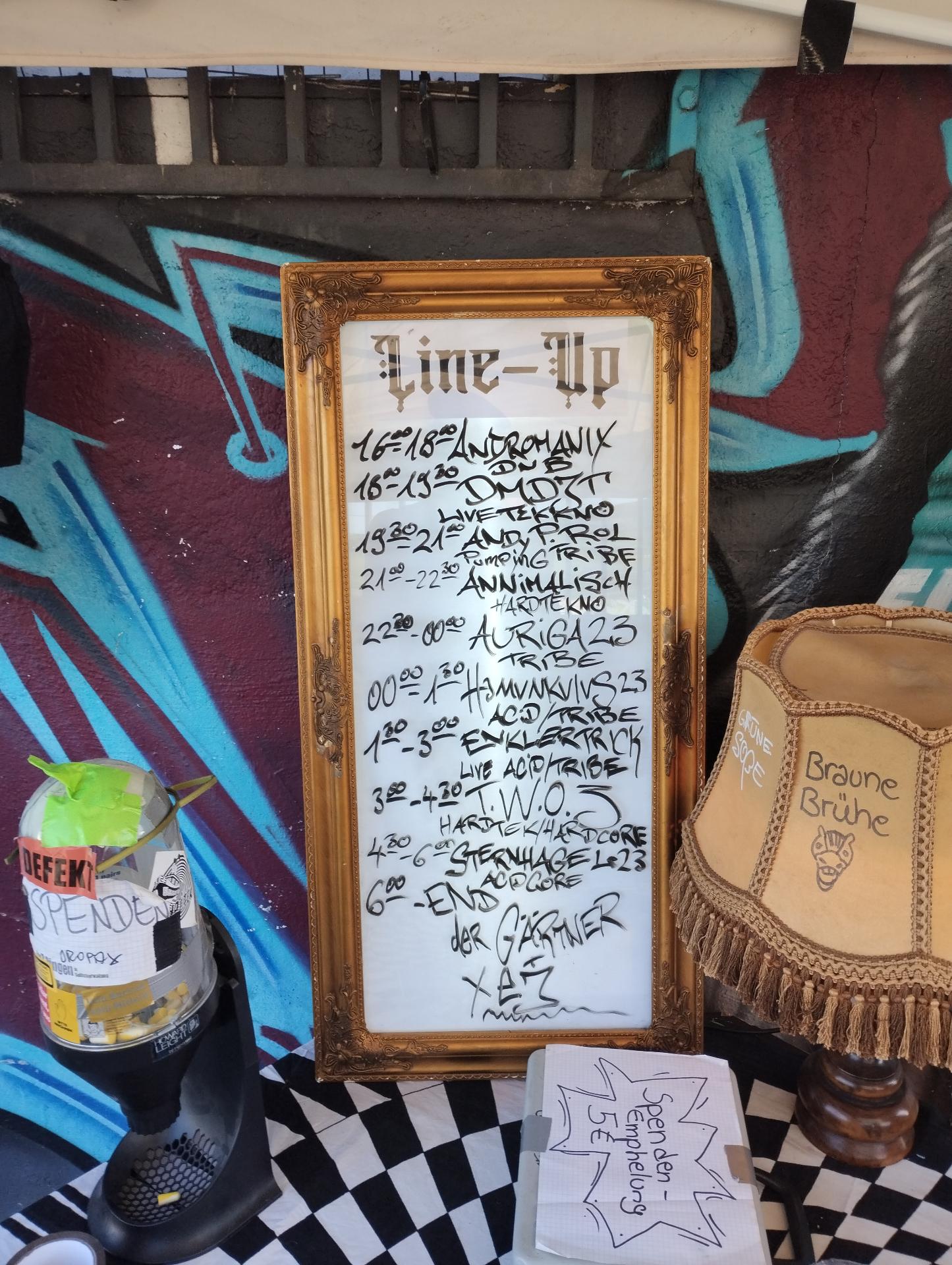 Leider habe ich sowohl Aufnahme als auch Stream nur äußerst stiefmütterlich gepflegt, somit waren einige Stunden des Abends nur exklusiv für Anwesende zu hören. Bis auf verärgerte Anwohner, die den Lüftungsmaßnahmen zur Hitzelinderung geschuldeten erhöhte Lautstärke erdulden mussten. Sorry.